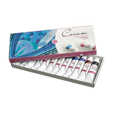 Краски акриловые художественные "Сонет", НАБОР 12 цветов по 10 мл, в тубах, Невская Палитра, 2841095, 2шт.#S