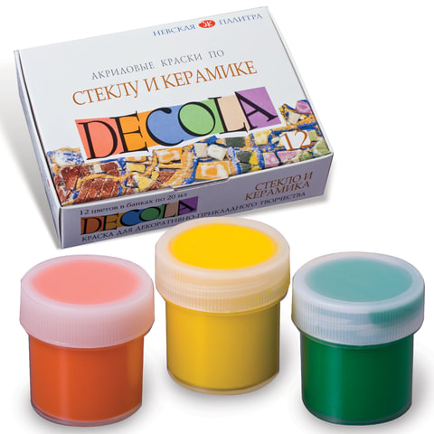Краски акриловые по стеклу и керамике "Декола", 12 цветов по 20 мл, в баночках, Невская Палитра, 4041114, 2шт.#S