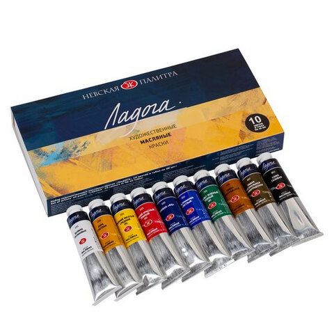 Краски масляные художественные "Ладога", НАБОР 10 цветов по 46 мл, в тубах, Невская Палитра, 1241006#S