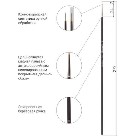 Кисть художественная проф. BRAUBERG ART CLASSIC, синтетика жесткая, круглая, № 00, длинная ручка, 200654, 10шт.#S