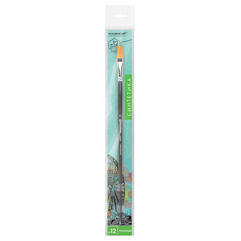 Кисть художественная проф. BRAUBERG ART CLASSIC, синтетика жесткая, плоская, № 12, длинная ручка, 200668, 5шт.#S