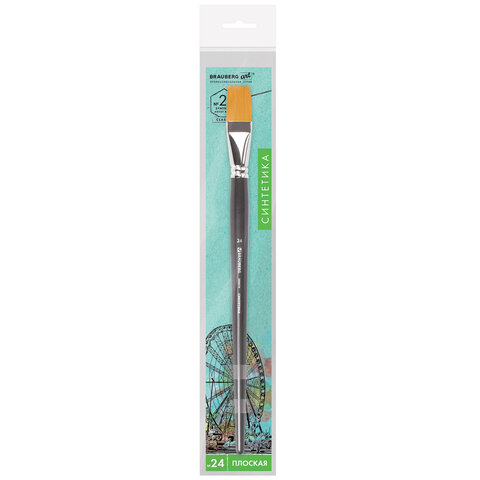 Кисть художественная проф. BRAUBERG ART CLASSIC, синтетика жесткая, плоская, № 24, длинная ручка, 200674, 2шт.#S