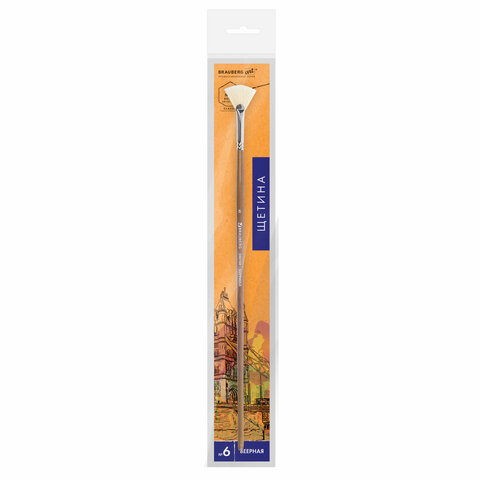 Кисть художественная профессиональная BRAUBERG ART CLASSIC, щетина, веерная, № 6, длинная ручка, 200744, 5шт.#S