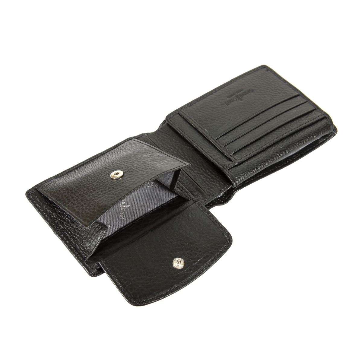 Внутри два отделения для купюр, карман для монет на кнопке, пять карманов для документов, сетчатый карман, потайной карман и семь кармашков для пластиковых карт.