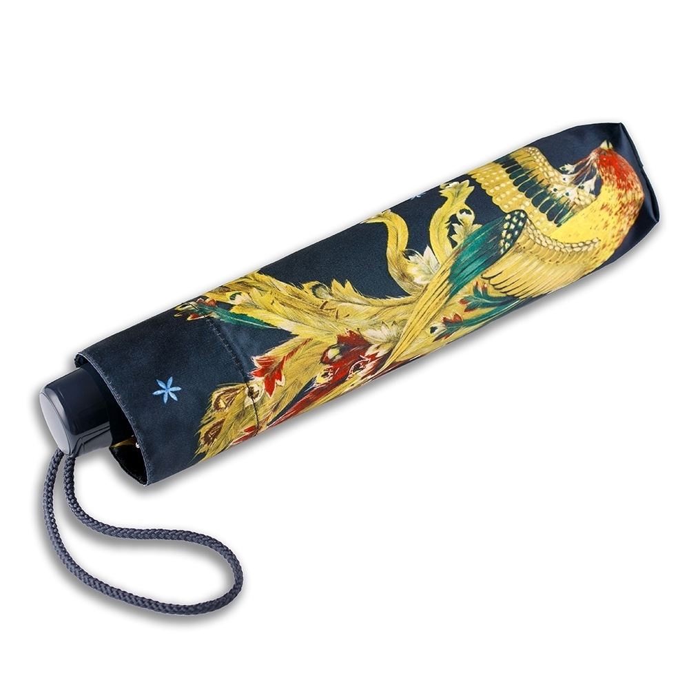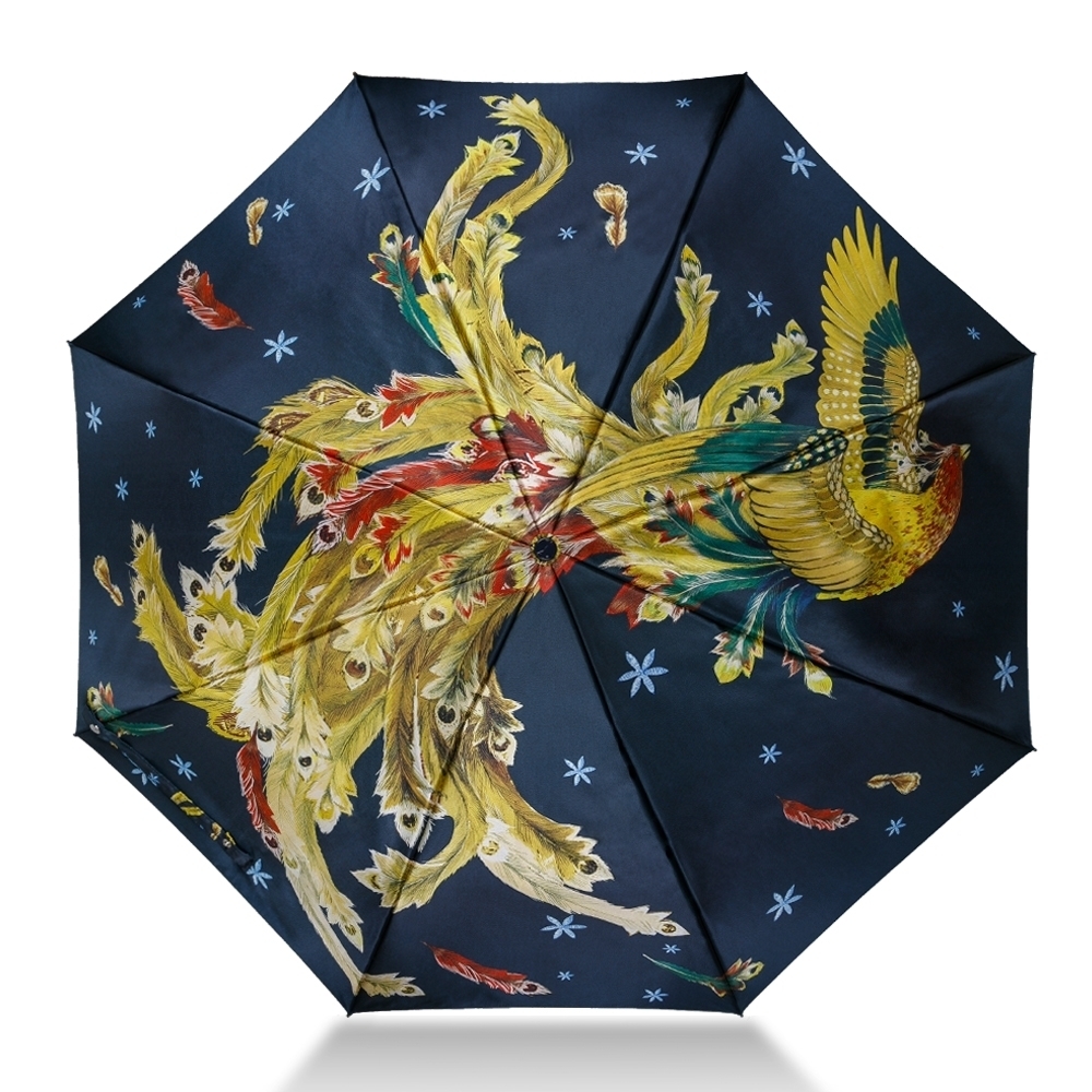 Зонт автомат, три сложения, пластиковая ручка с петлёй на запястье, восемь спиц 58 см. Диаметр купола 116 см.