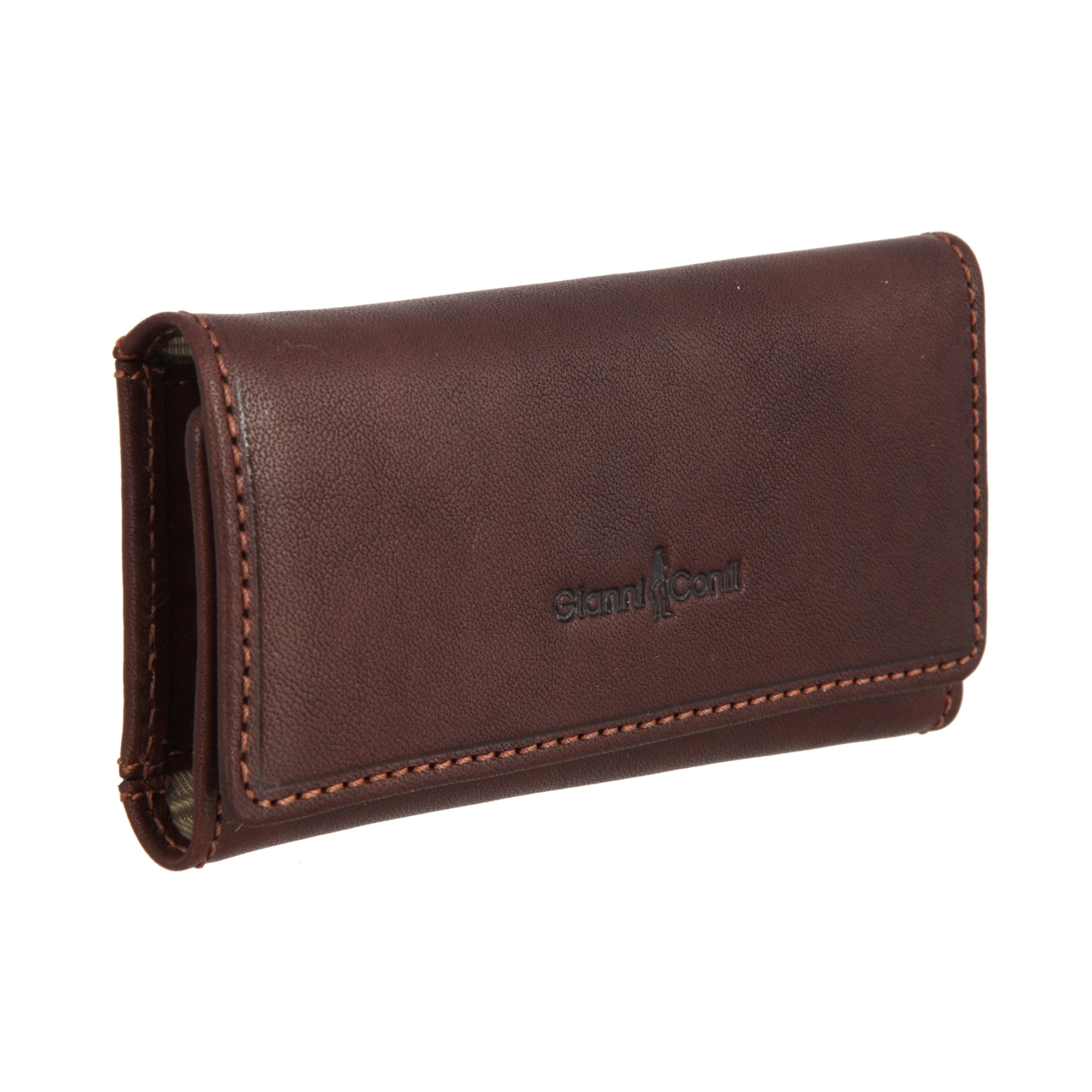 Ключница на 6 ключей, закрывается клапаном на двух кнопках, внутри шесть карабинов для ключей, съемный кожаный брелок для ключа домофона, два кармашка.