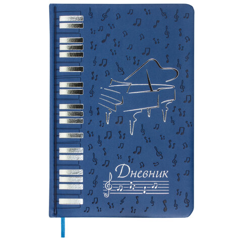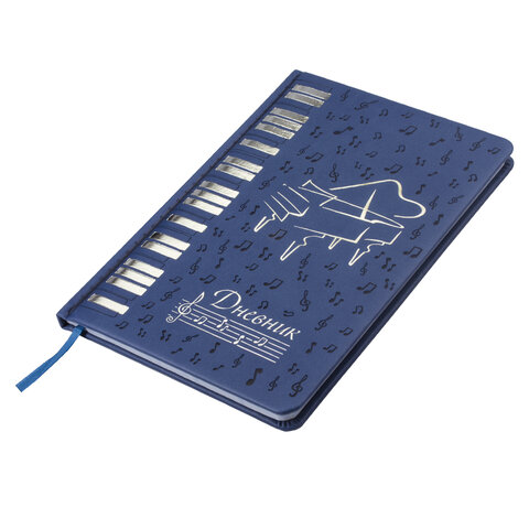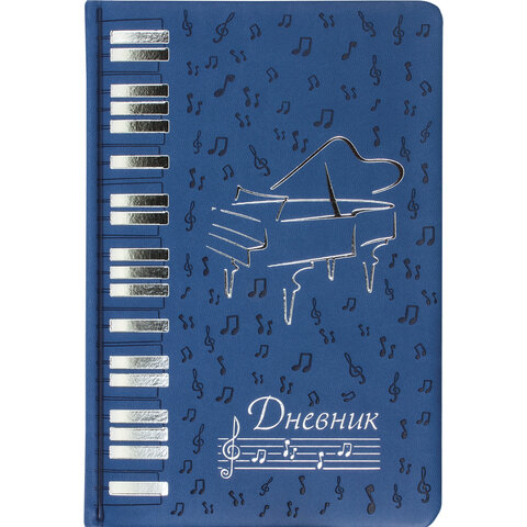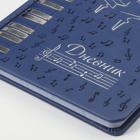 Дневник для музыкальной школы 140х210 мм, 48 л., обложка кожзам твердая, фольга, BRAUBERG, справочный материал, темно-синий, 105500, 4шт.#S