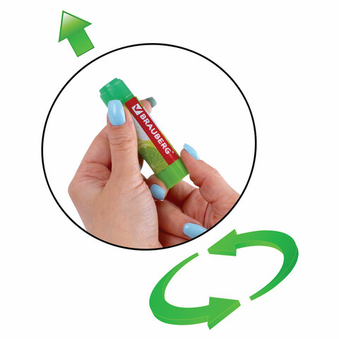 Клей-карандаш BRAUBERG "Fresh Zone". Надежно и быстро склеивает изделия из бумаги и картона, ткани и фотографии.