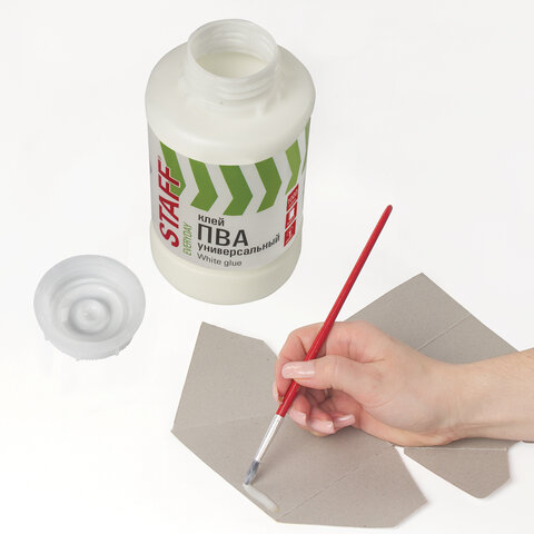 Клей ПВА универсальный STAFF применяется для изделий из бумаги, картона, тканей, виниловых и бумажных обоев. Может использоваться в качестве модификатора для улучшения технологических и адгезионных свойств.