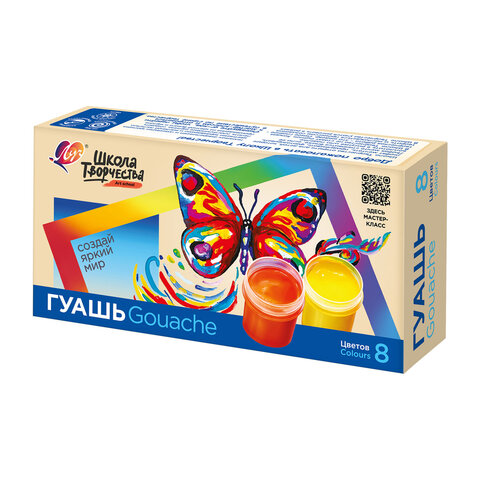 Гуашь ЛУЧ "Школа творчества", 8 цветов по 20 мл, без кисти, картонная упаковка, 29С 1752-08, 6шт.#S