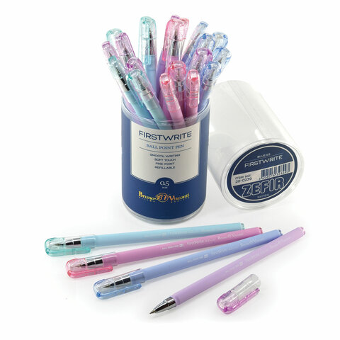 Ручка шариковая BRUNO VISCONTI FirstWrite, СИНЯЯ, Zefir, ассорти, узел 0,5 мм, линия письма 0,3 мм, 20-0239, 24шт.#S