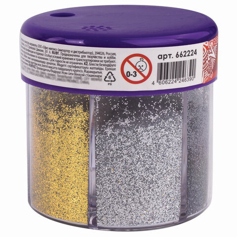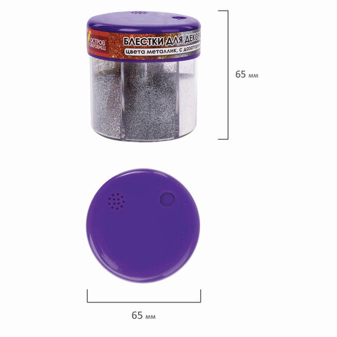 Блестки (глиттер) для декора, поделок, DIY, творчества, оформления, ОСТРОВ СОКРОВИЩ, МЕТАЛЛИК, диспенсер с дозатором, 6 цв по 10 г, 662224, 6шт.#S