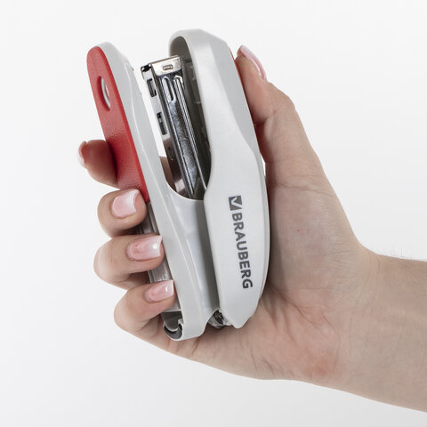 Степлер №24/6, 26/6 BRAUBERG "Extra", до 30 листов, серо-красный, 229088, 3шт.#S