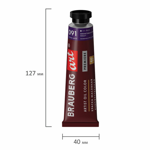 Краска масляная художественная BRAUBERG ART PREMIERE, 46 мл, проф. серия, ФИОЛЕТОВАЯ ТЕМНАЯ, 191421, 3шт.#S