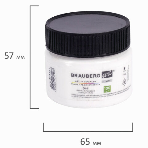 Гуашь художественная 1 шт., BRAUBERG ART CLASSIC, баночка 100 мл, БЕЛИЛА ТИТАНОВЫЕ, 191582, 6шт.#S