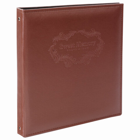 Фотоальбом BRAUBERG на 20 магнитных листов, 23х28 см, под гладкую кожу, на кольцах, коричневый, 390492#S