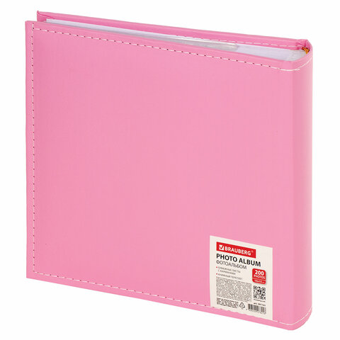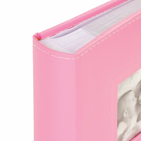 Фотоальбом BRAUBERG "Cute Baby" на 200 фото 10х15 см, под кожу, бумажные страницы, бокс, розовый, 391141#S
