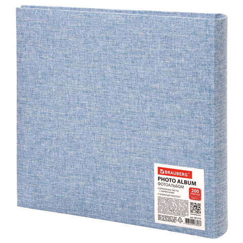 Фотоальбом BRAUBERG "Джинс" на 200 фото 10х15 см, ткань, бумажные страницы, переплет, бокс, 391173#S