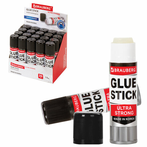 Клей-карандаш BRAUBERG ULTRA STRONG, УСИЛЕННАЯ ФОРМУЛА, 15 г, ЮЖНАЯ КОРЕЯ, 229545, 20шт.#S