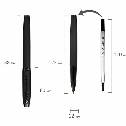 Ручка-роллер PARKER "IM Achromatic Black BT", корпус черный матовый, нержавеющая сталь, черная, 2127743#S