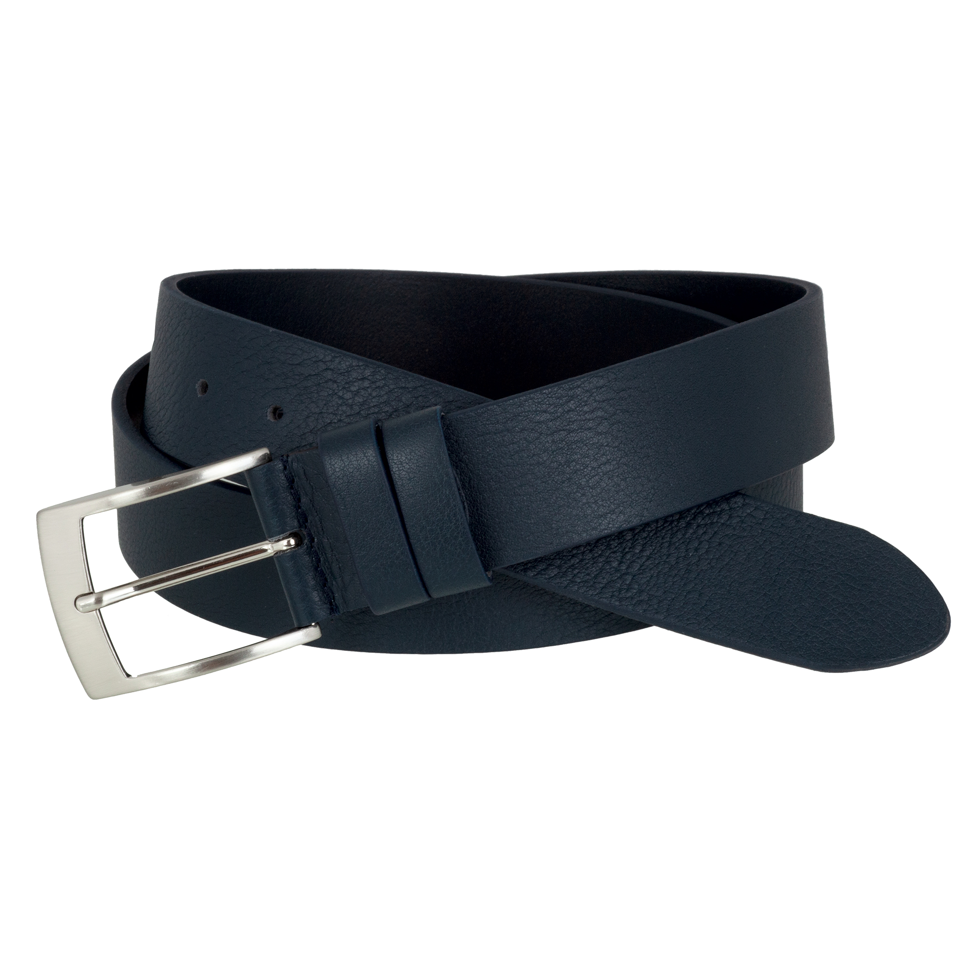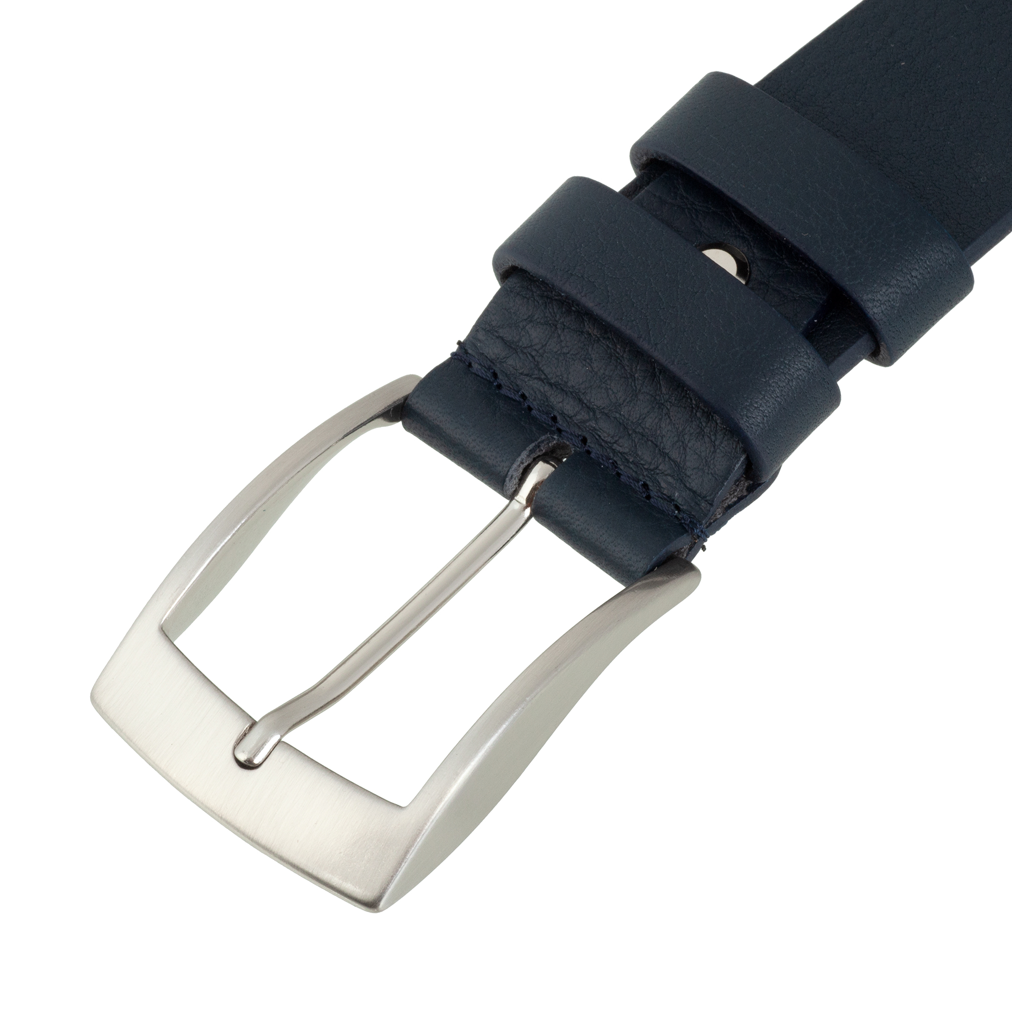 Ремень из натуральной воловьей кожи с металлической пряжкой серебристого цвета размером 5 х 6 см. Длина ремня регулируется.
