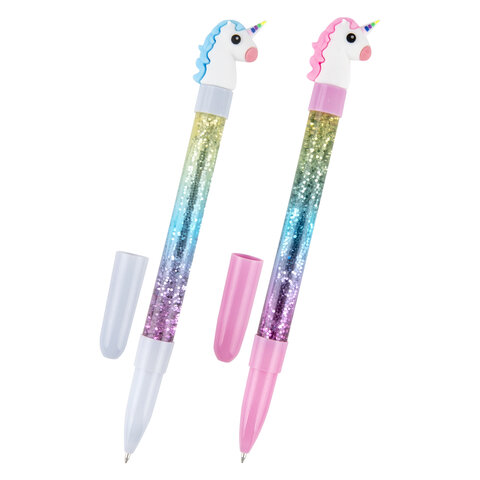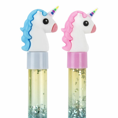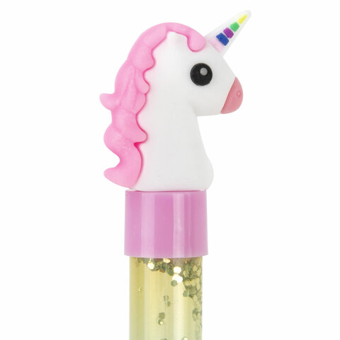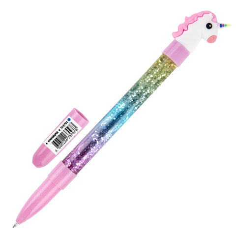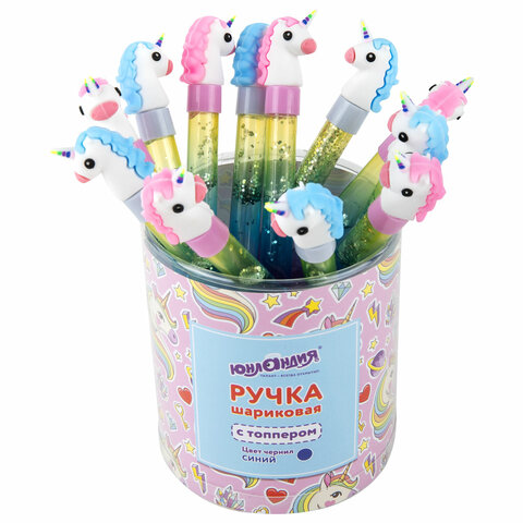 Ручка с топпером и блестками шариковая ЮНЛАНДИЯ "Единорог", детали ассорти, СИНЯЯ, пишущий узел 0,7 мм, 143791, 12шт.#S
