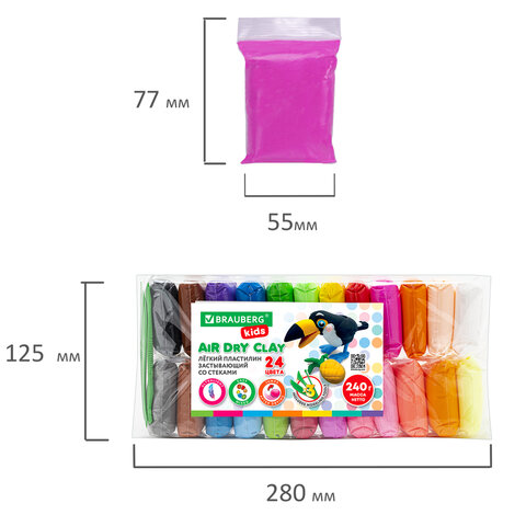Пластилин супер лёгкий воздушный застывающий 24 цвета, 240 г, 3 стека, BRAUBERG KIDS, 106307, 4шт.#S