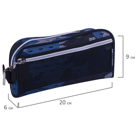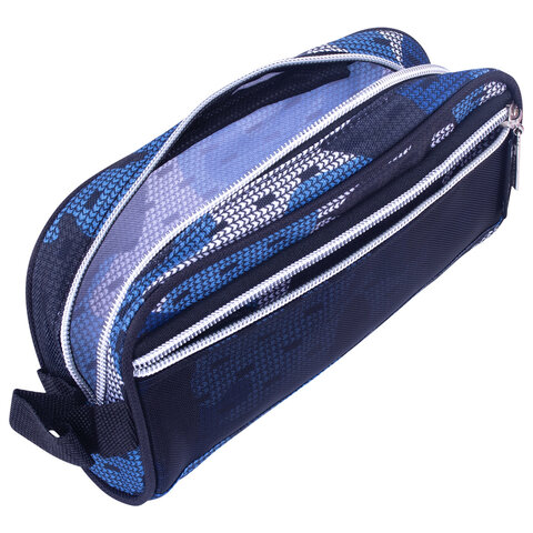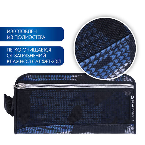 Пенал-косметичка BRAUBERG с ручкой, карман из сетки, полиэстер, "Storm", 20х6х9 см, 229275, 2шт.#S