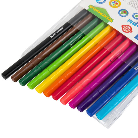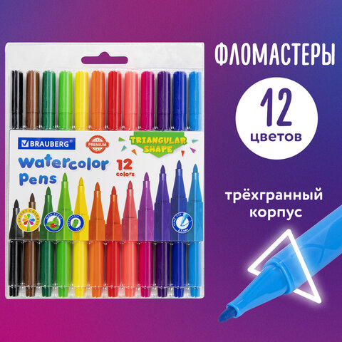Фломастеры BRAUBERG PREMIUM - набор из 12 трехгранных фломастеров со смываемыми чернилами на водной основе в ПВХ-упаковке для рисования.