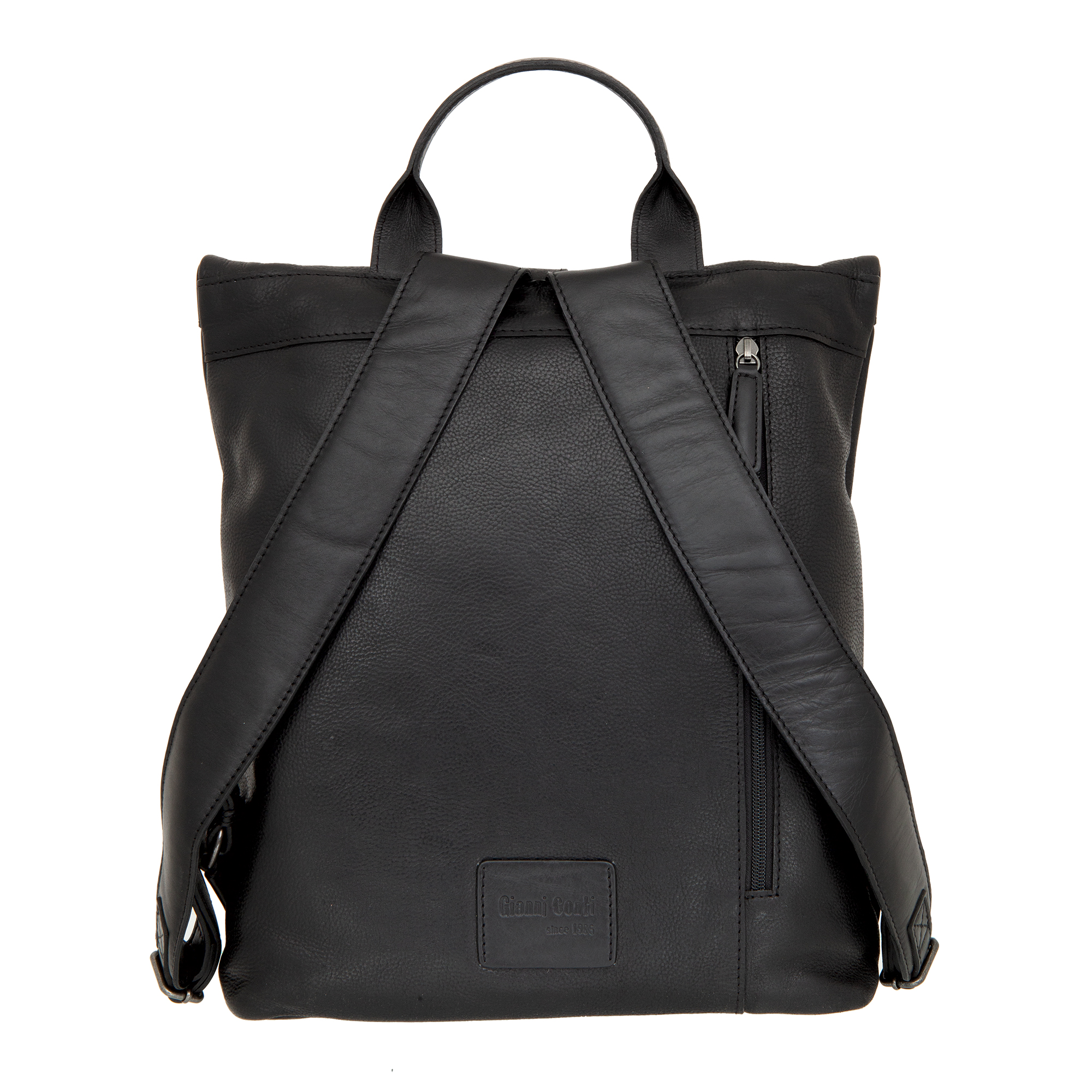 Рюкзак из натуральной кожи бренда Gianni Conti. Состоит из одного основного отдела, закрывается на молнию и клапаном на замок.  Внутри карман на молнии, три кармана для мелких предметов. Снаружи на передней стенке два кармана на молнии, один из них расположен под клапаном. На внутренней стенке карман на молнии.Оснащен регулируемыми плечевыми лямками.
