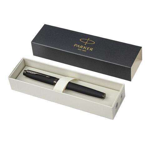 Ручка перьевая PARKER "IM Achromatic Black BT", черный матовый, нержавеющая сталь, синяя, 2127741#S