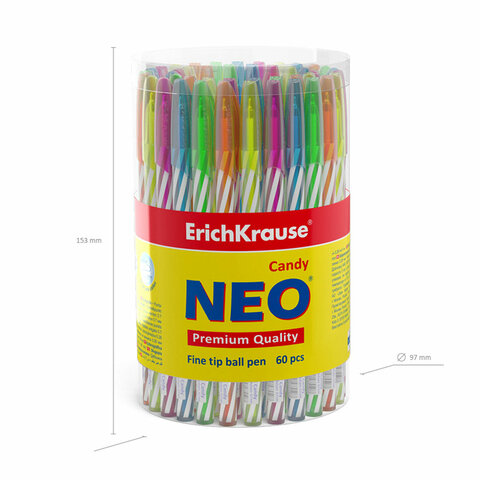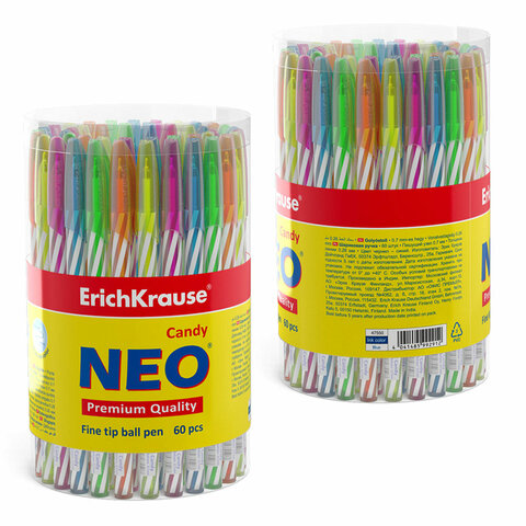 Ручка шариковая масляная ERICH KRAUSE "Candy", СИНЯЯ, корпус ассорти, узел 0,5 мм, линия письма 0,26 мм, 47550, 60шт.#S
