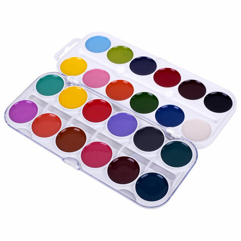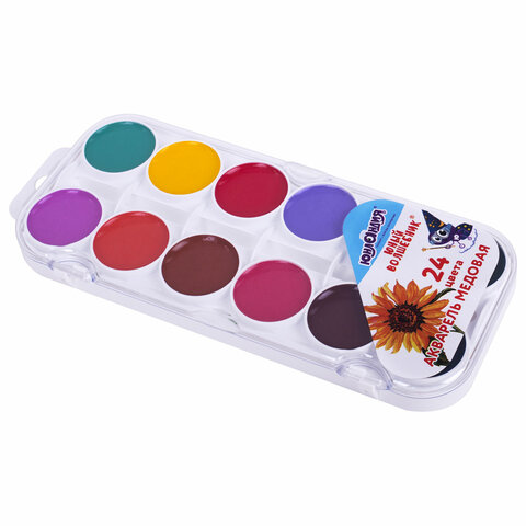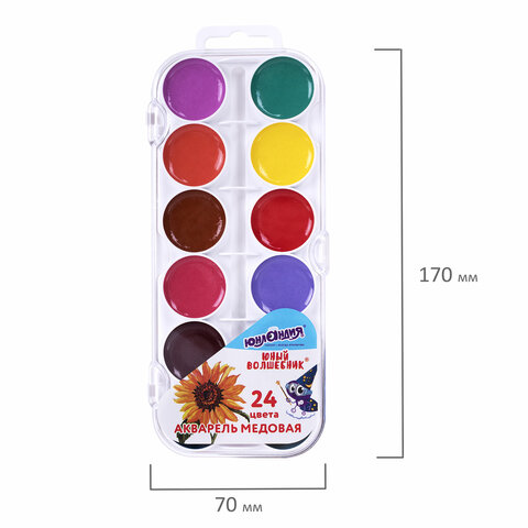Краски акварельные ЮНЛАНДИЯ "ЮНЫЙ ВОЛШЕБНИК", медовые, 24 цвета, круглые кюветы, пластик, 192359, 12шт.#S