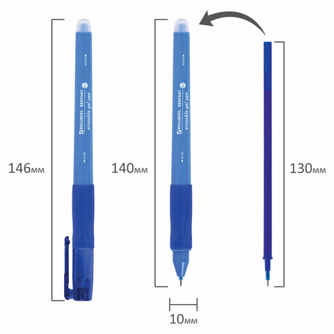 Ручка стираемая гелевая с эргономичным грипом + 9 стержней, BRAUBERG "RESTART", СИНЯЯ, игольчатый узел 0,7 мм, линия письма 0,35 мм, 144098, 6шт.#S