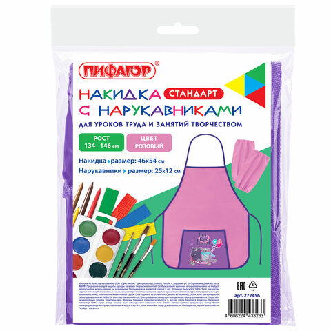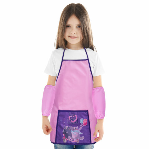 Накидка фартук с нарукавниками для труда ПИФАГОР, 1 карман, 46х54 см, "Bike cats", 272456, 4шт.#S