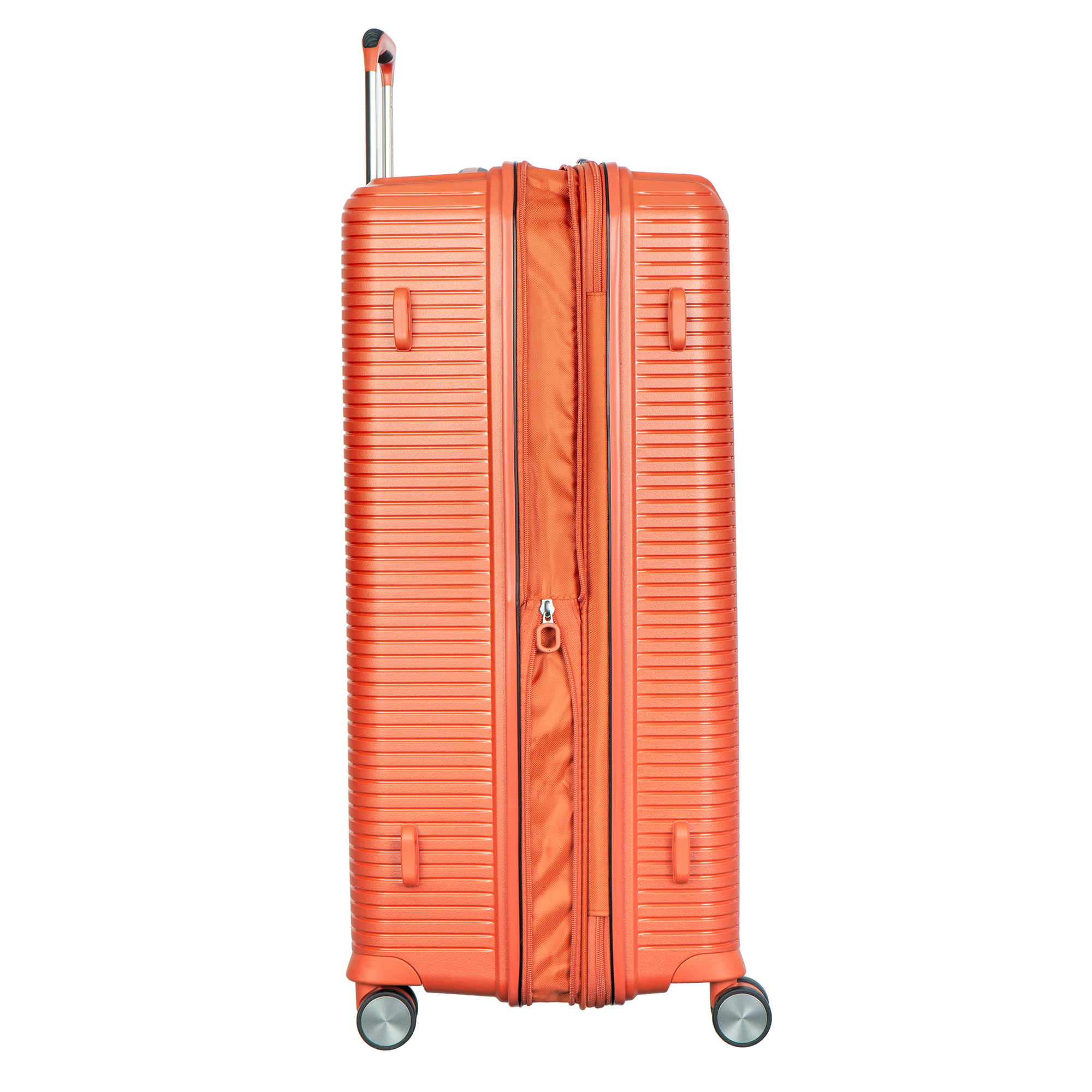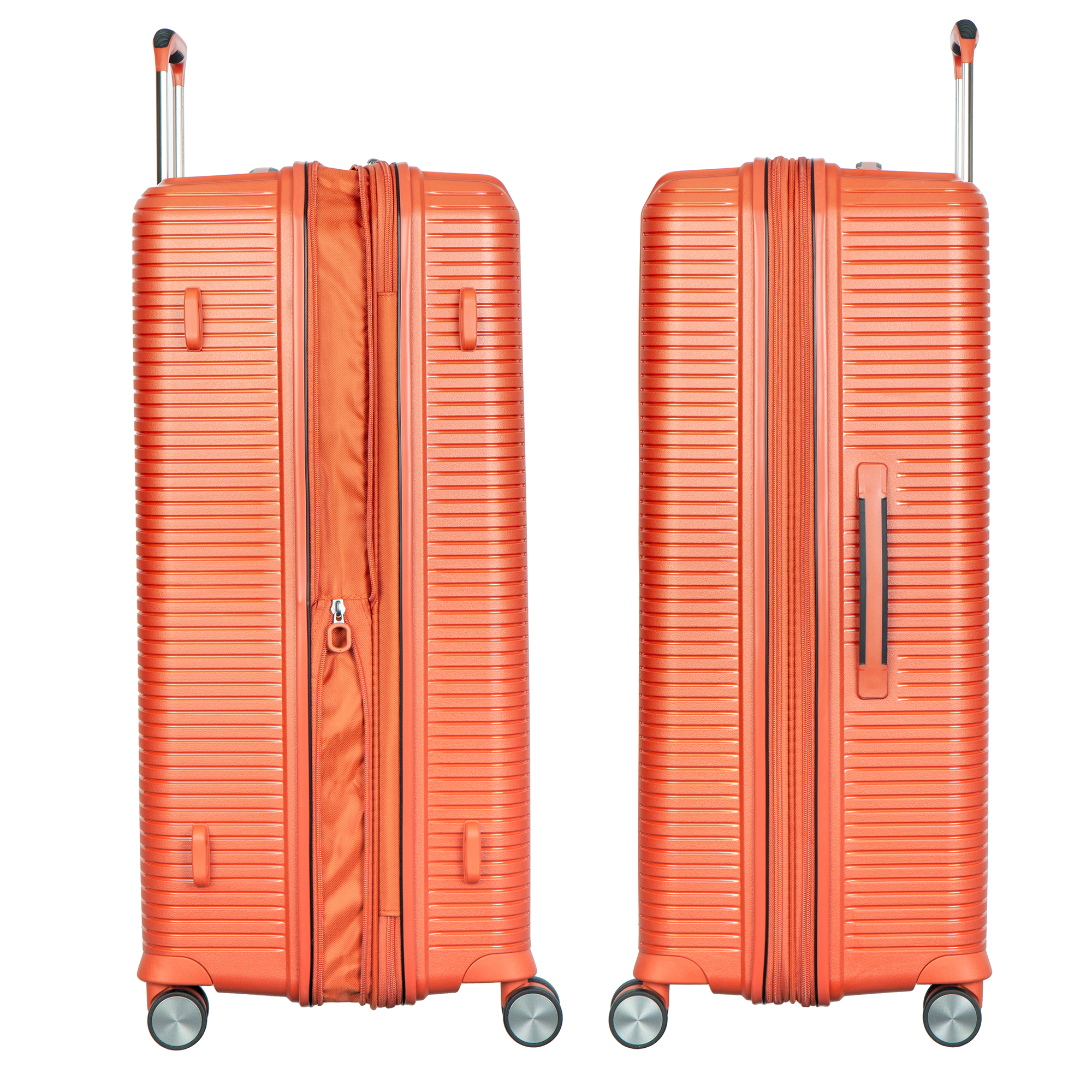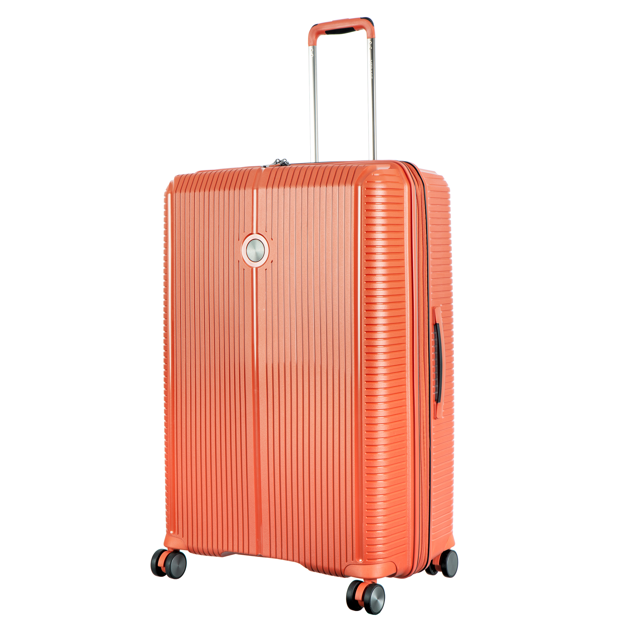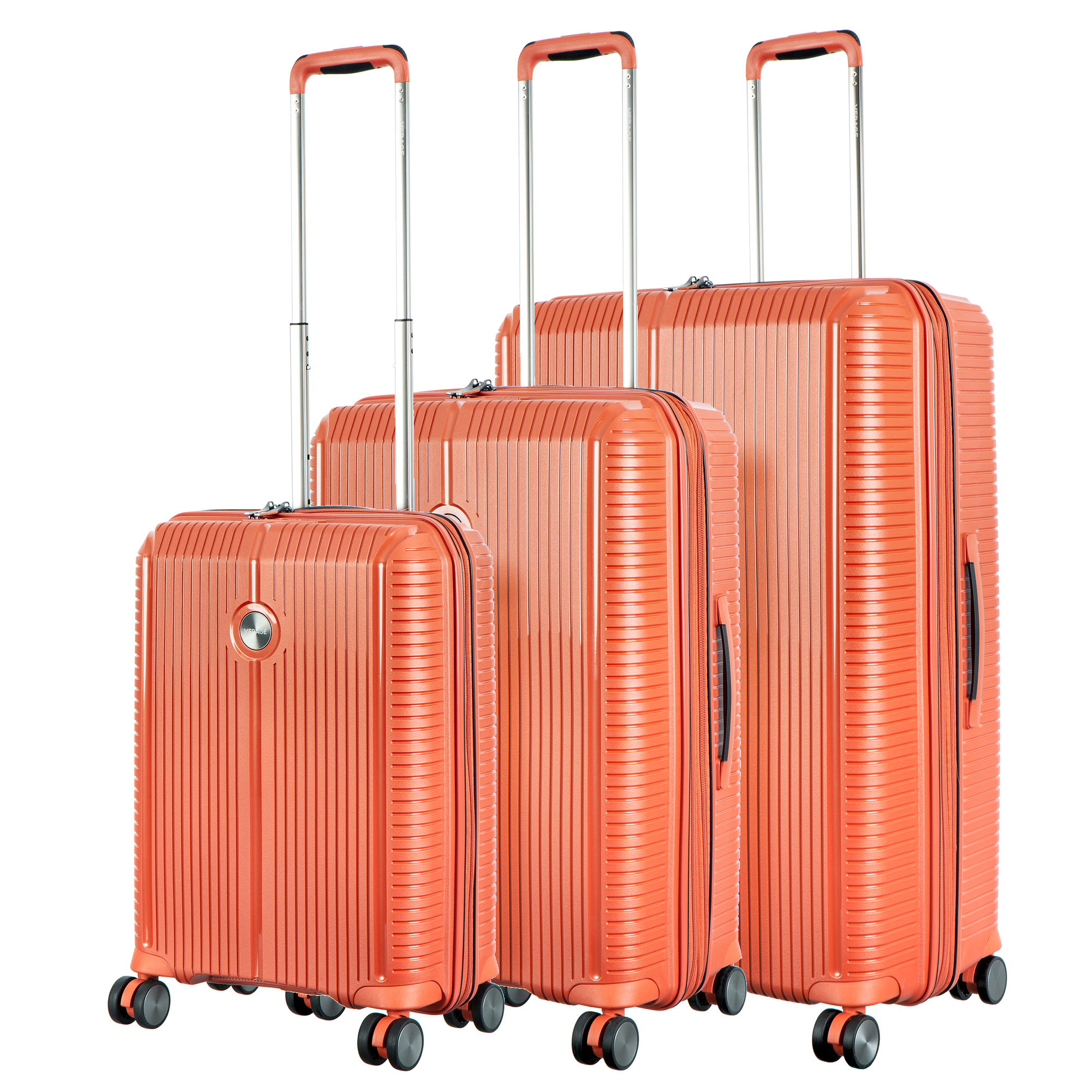 Комплект чемоданов оранжевого цвета, коллекция: Verage «Rome». Выполнен из полипропилена, материал чрезвычайно прочный и долговечный. Все модели оснащены двойной молнией безопасности, что препятствует вскрытию багажа. Внутренним отделом максимальной вместимости с перекрёстными лямками и разделителем для одежды, возможностью увеличения объёма кабины чемодана во всех размерах (функцией невидимого расширения). Выдвижной телескопической ручкой с фиксатором и регулировкой в нескольких положениях, верхней и боковой ручками для удобного подъёма и переноски. Бесшумными колёсами с поворотом на 360°, кодовым замком TSA. Комплект состоит из трёх размеров: 19*(S) (55-38-20 см. 2,500 кг), 24*(M) (66-44-27 см. 3,500 кг), 28*(L) (77-51-31 см. 4,400 кг).