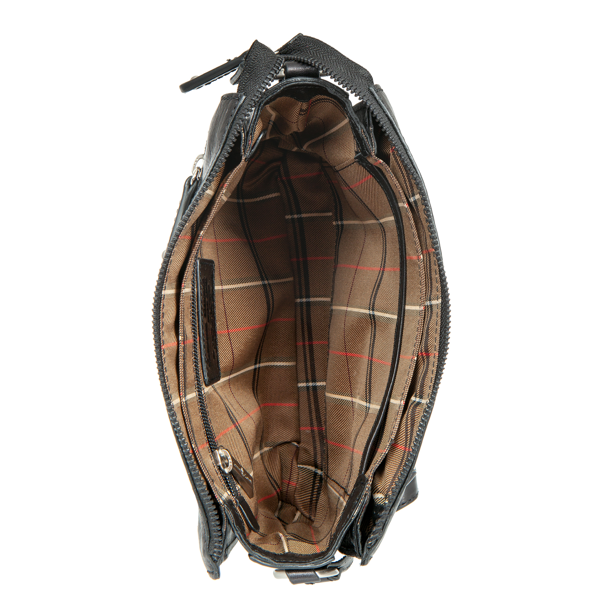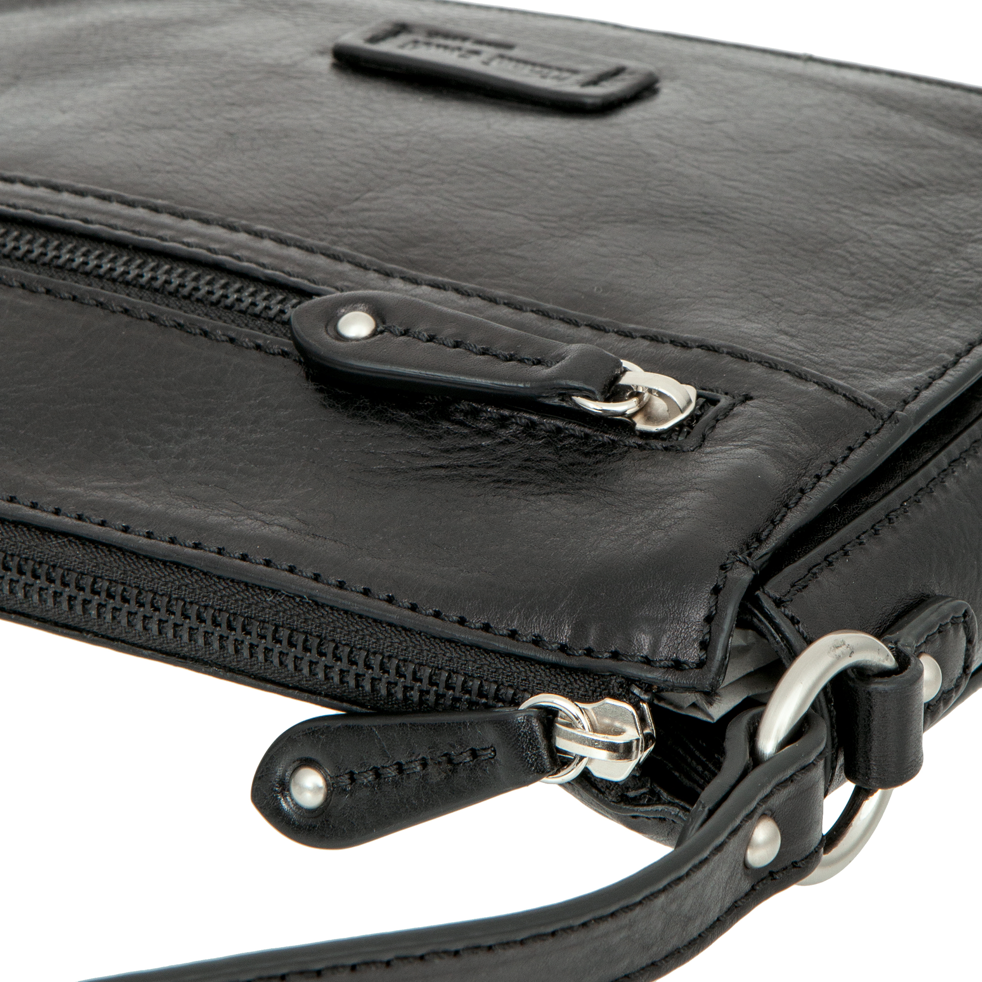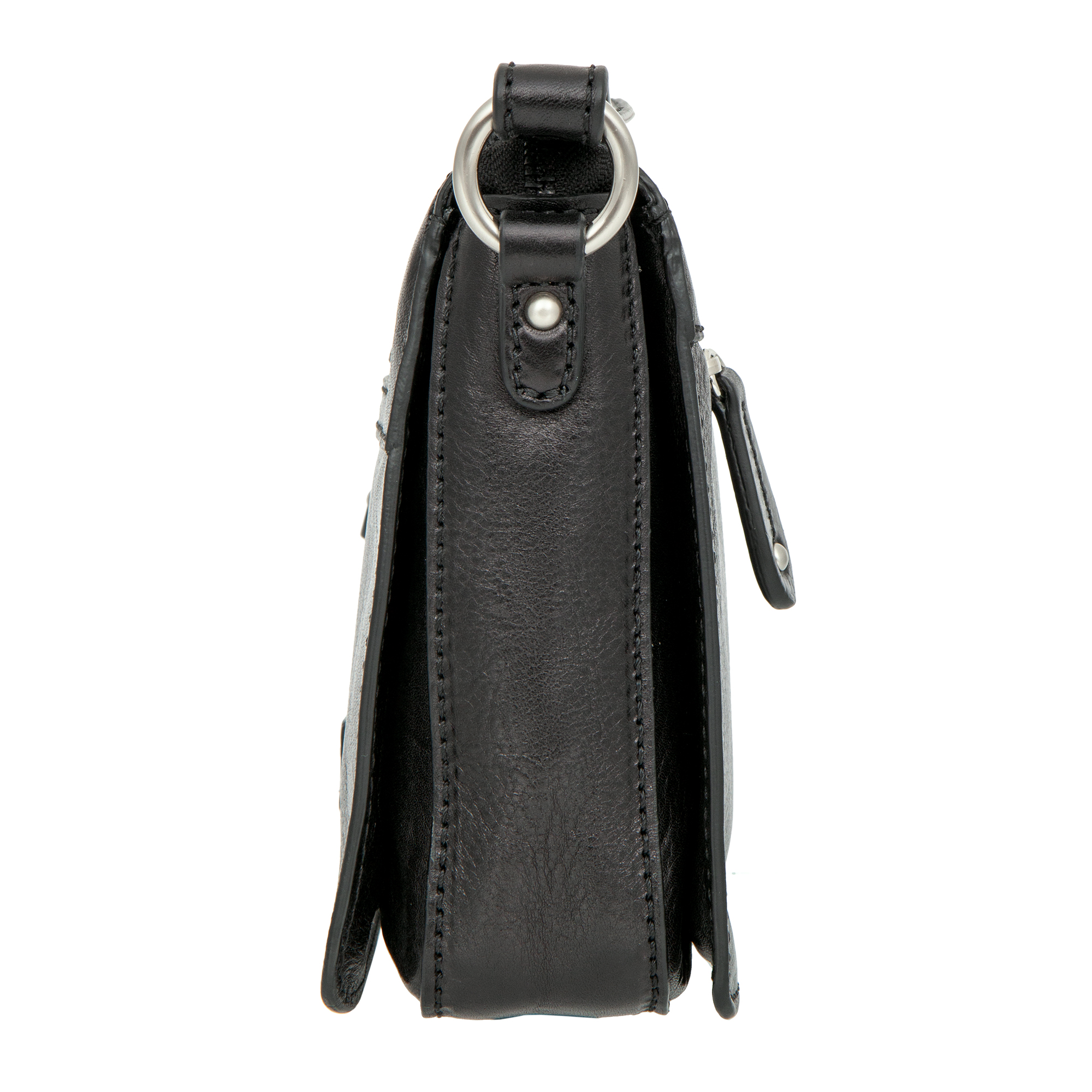 Женская чёрная кожаная сумка через плечо от Gianni Conti. Закрывается на молнию. Внутри три отделения, в которых расположены карман для телефона, кармашек для мелких предметов, карман на молнии и один открытый карман. На лицевой и внутренней сторонах карманы на молниях. Сумка оснащена кожаным плечевым ремешком. Размеры: 19 х 22.5 х 6 см.