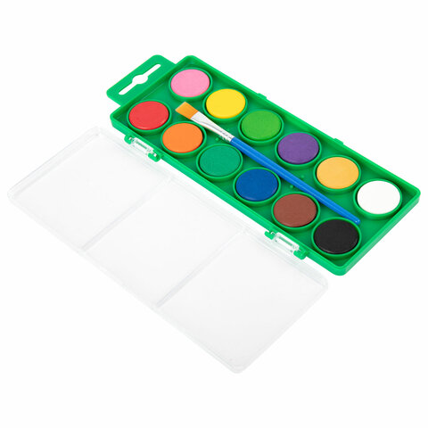 Краски акварельные BRAUBERG KIDS, 12 ярких цветов, круглые кюветы, пластиковый пенал, 191806, 12шт.#S