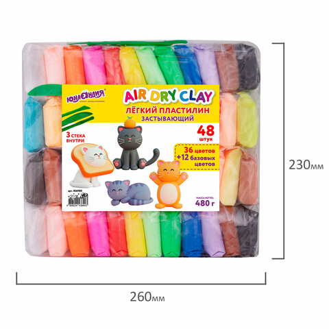 Пластилин супер лёгкий воздушный застывающий 48 штук (36 цветов + 12 базовых), 480 г, 3 стека, ЮНЛАНДИЯ, 106980, 2шт.#S