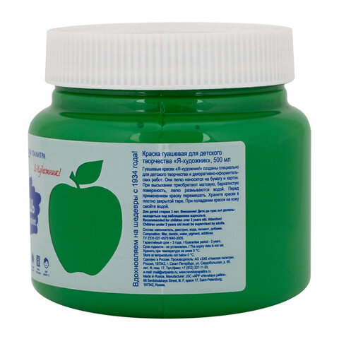 Гуашь "Я - Художник!" Невская Палитра, банка 500 мл, зеленая светлая, 23024717, 6шт.#S