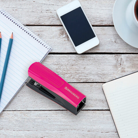 Степлер №24/6, 26/6 BRAUBERG "SUPER", до 30 листов, маджента и черный, 272740, 3шт.#S