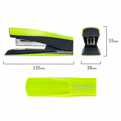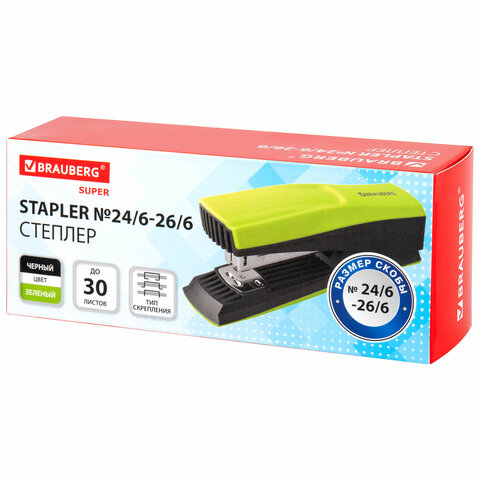 Степлер №24/6, 26/6 BRAUBERG "SUPER", до 30 листов, зелено-черный, 272741, 3шт.#S