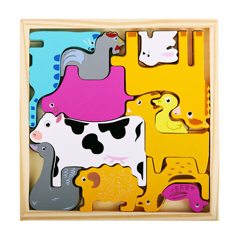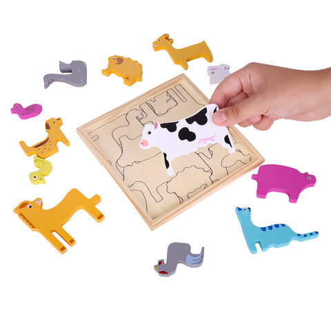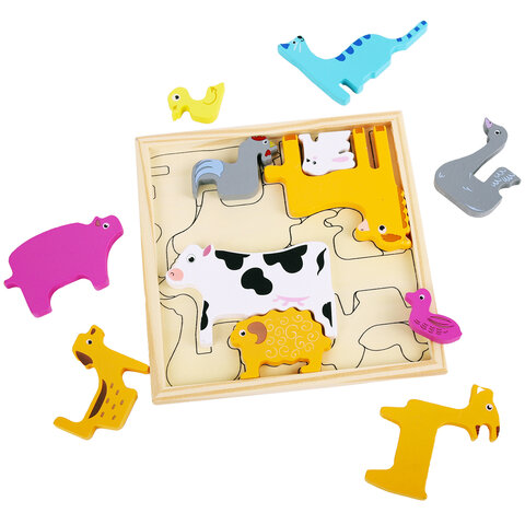 Пазл деревянный развивающий для детей "Домашние животные", 17х17 см, BRAUBERG KIDS, 665251, 4шт.#S