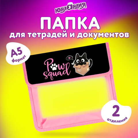 Папка для тетрадей ЮНЛАНДИЯ А5, пластик, 2 отделения, клапан на липучке, "Box cat", 273331, 5шт.#S
