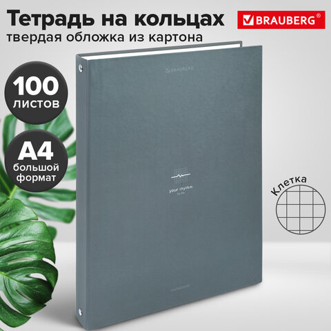 Тетрадь на кольцах БОЛЬШАЯ А4, 215х305 мм, 100 л., твердый картон, клетка, BRAUBERG, "Rhythm", 405407, 3шт.#S