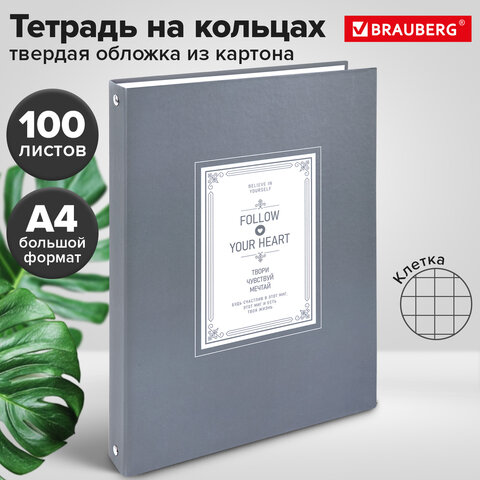 Тетрадь на кольцах БОЛЬШАЯ А4, 215х305 мм, 100 л., твердый картон, клетка, BRAUBERG, "Винтаж", 405410, 3шт.#S