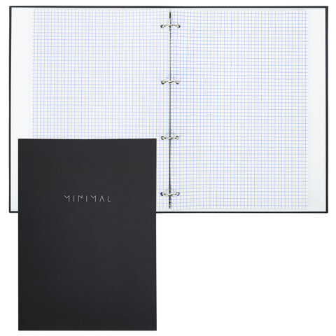 Тетрадь на кольцах БОЛЬШАЯ А4, 215х305 мм, 100 л., твердый картон, клетка, BRAUBERG, "Minimal black", 405408, 3шт.#S