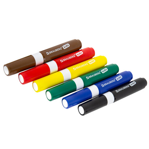 Фломастеры суперсмываемые толстые для малышей BRAUBERG KIDS, 6 цветов, ПВХ-упаковка, 152604, 8шт.#S