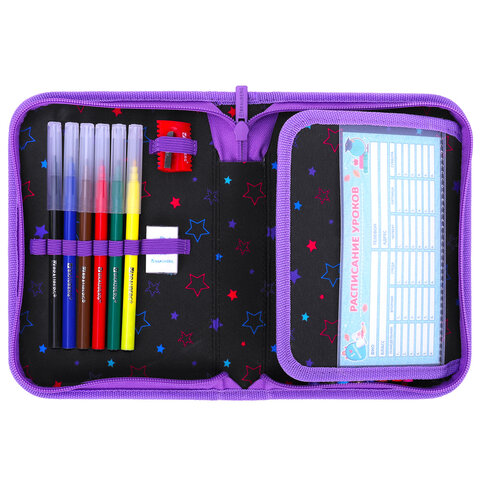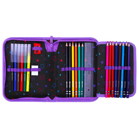 Пенал BRAUBERG с наполнением, 1 отделение, 1 откидная планка, 24 предмета, 21х14 см, "Radiant unicorn", 273532, 2шт.#S
