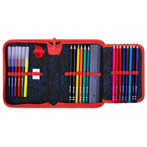 Пенал BRAUBERG с наполнением, 1 отделение, 1 откидная планка, 24 предмета, 21х14 см, "Foggy car", 273533, 2шт.#S